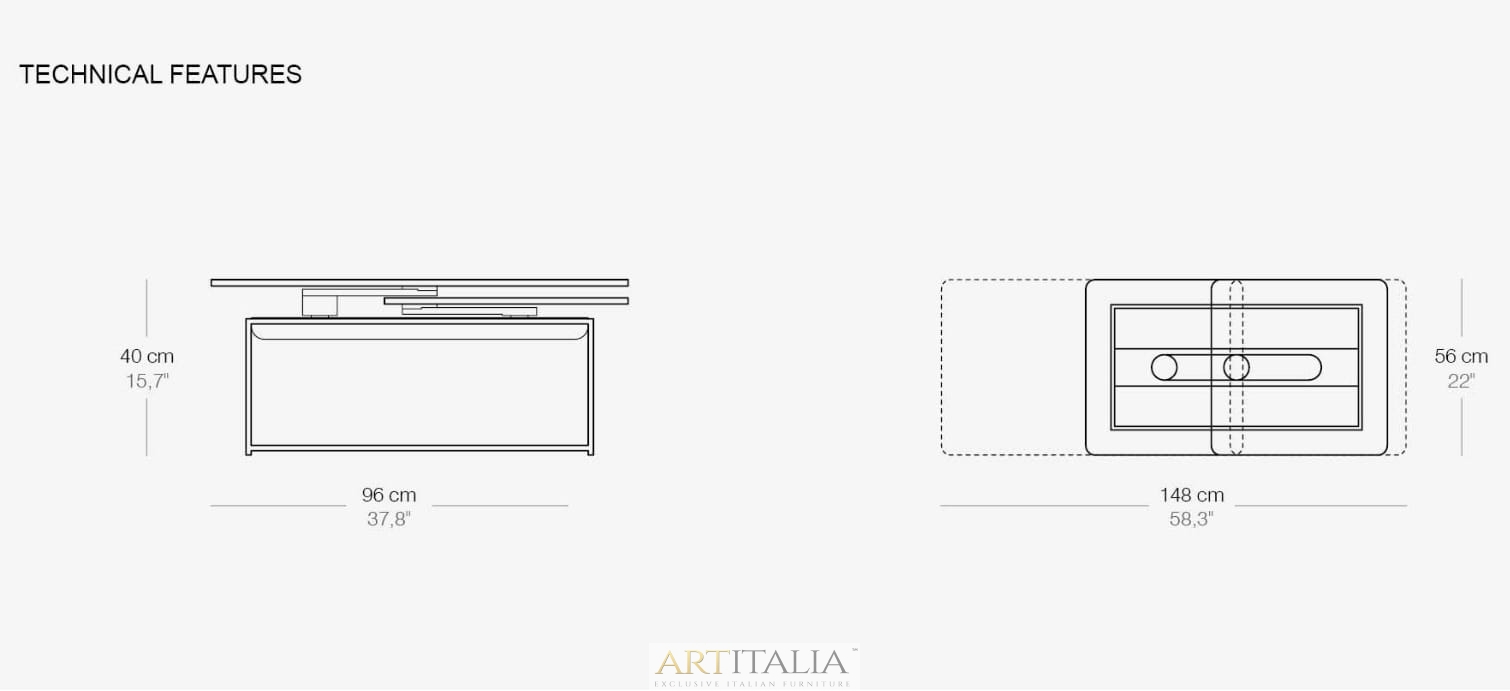 Wymiar złożonego stolika: 96 x 56 cm x h 48 cm / rozłożony 148 x 56 x h 48 cm