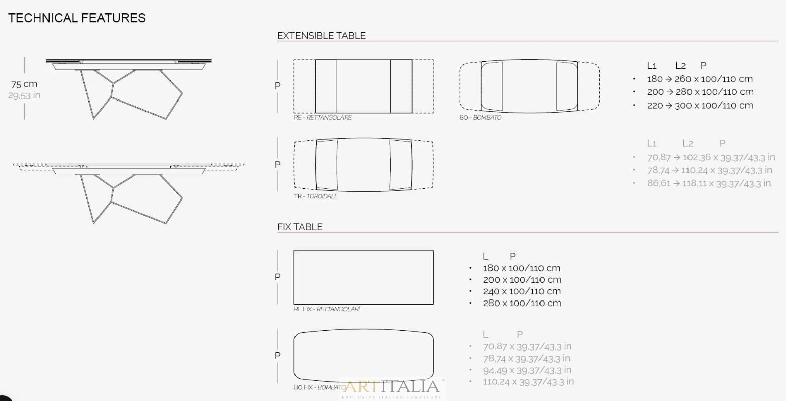 NAOS Nowoczesne rozkładane włoskie stoły model Gravity | ARTITALIA