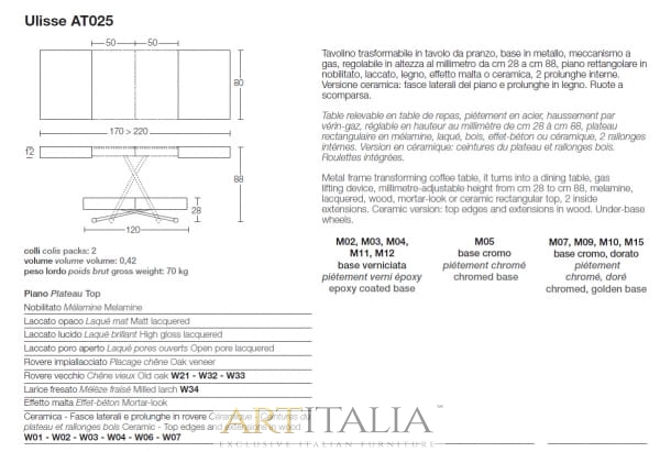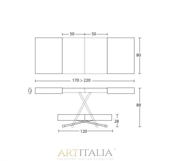 - stolik podnoszony od 28 do 88 cm, rozkładany od 120 x 80 cm do 170 / 220 x 80 cm