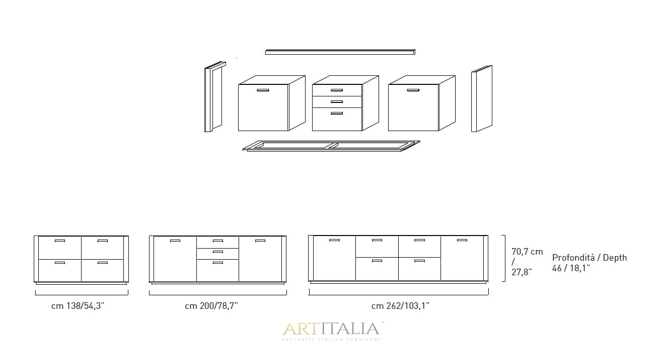 Włoskie modułowe komody bufety Alivar model: TRATTO
