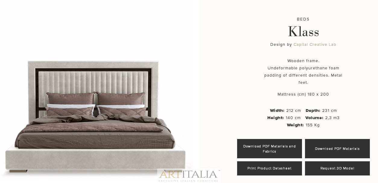 Włoska luksusowa kolekcja łóżek Capital Contemporary model Klass