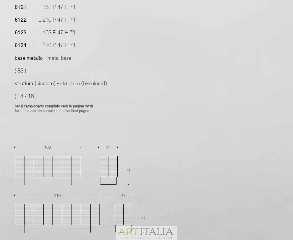 - wielość 160x47 cm, 210x47 cm, h 71 cm,