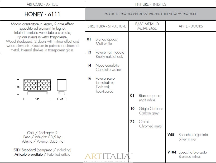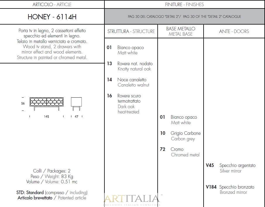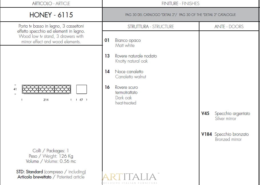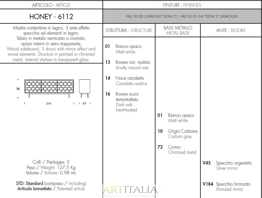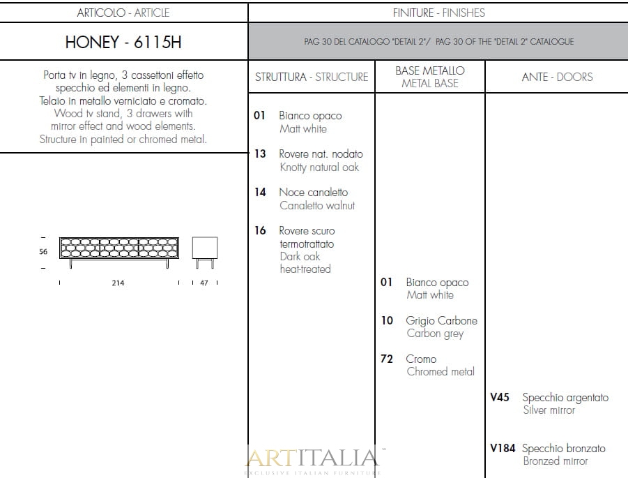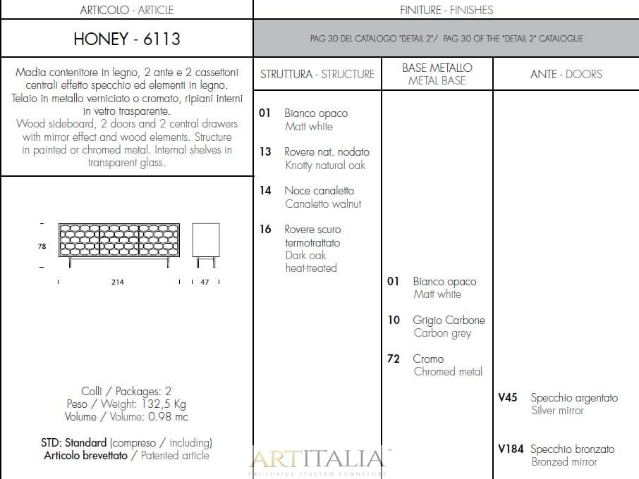 Włoskie designerskie komody Tonin model kolekcja Honey