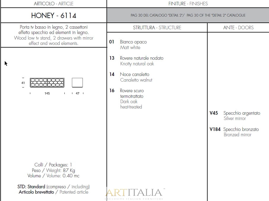 Włoskie ekskluzywne nowoczesne komody z kolekcji Tonin - kolekcja Honey