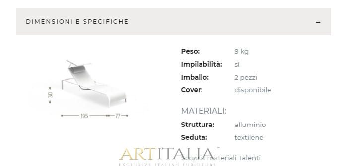 Włoskie ekskluzywne meble ogrodowe Talenti leżak model MILO