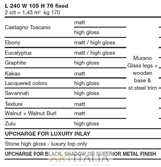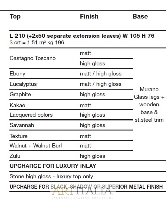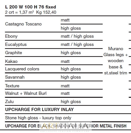 Włoskie ekskluzywne stoły Costantini, model Cool - podstawa z elementami ze szkła Murano