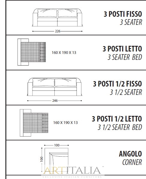 - wymiary sof z opcją łózka, szerokość materaca: 120, 140, 160, 160 x 190 cm