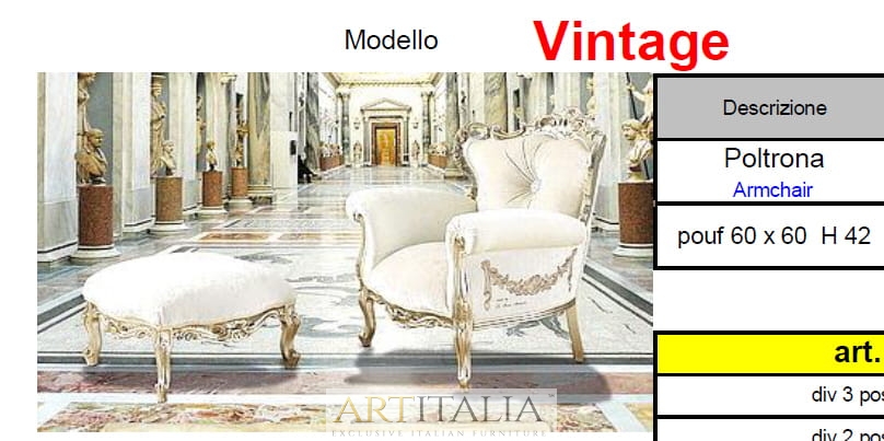 Ekskluzywna kolekcja mebli wypoczynkowych do salonu, pokoju dziennego lub luksusowych miejsc publicznych Di Marco - model Vintage