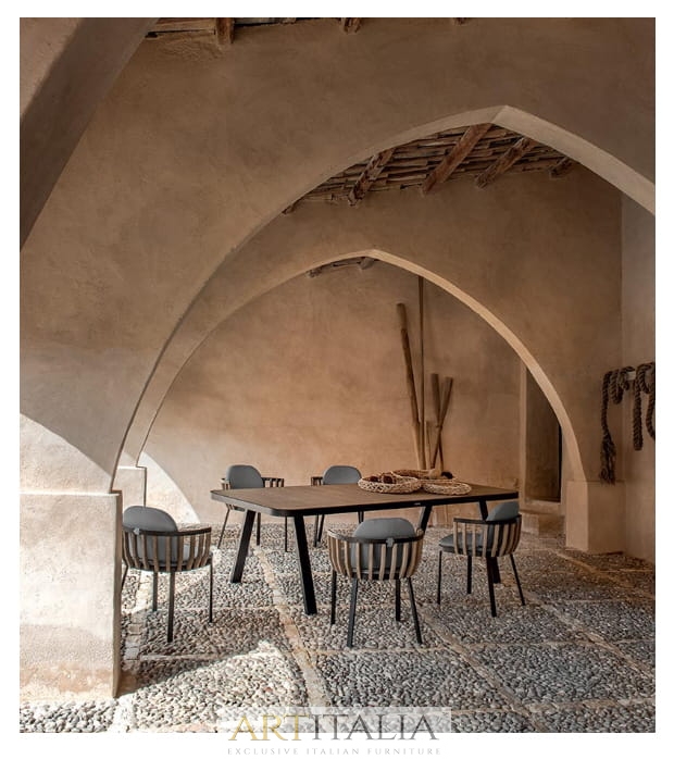 Uzupełnieniem kolekcji są elementy jadalniane: stół i krzesła, których design pozostaje spójny z resztą kolekcji, w której naprzemienne materiały tworzą harmonijny „rytm”.