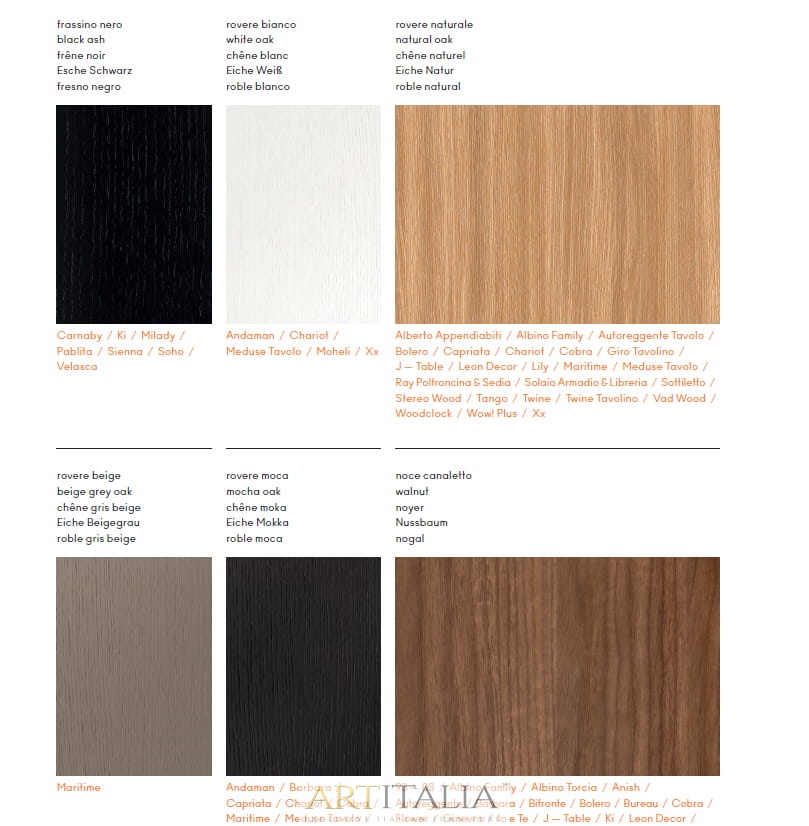 Dostępne wykończenia korpusu i frontów: