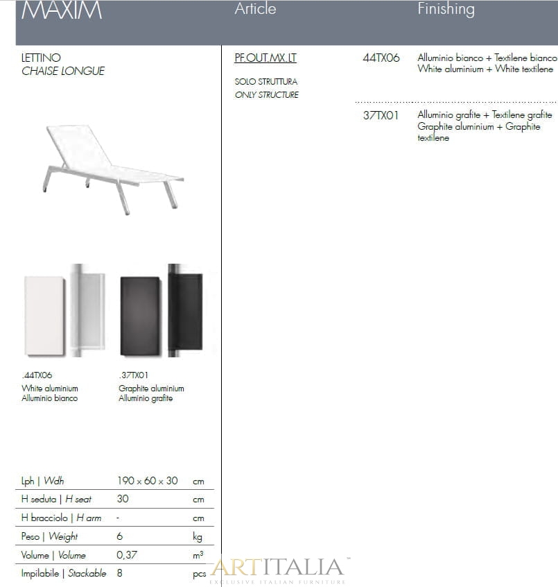 Włoskie nowoczesne leżaki ogrodowe Atmosphera kolekcja Maxim