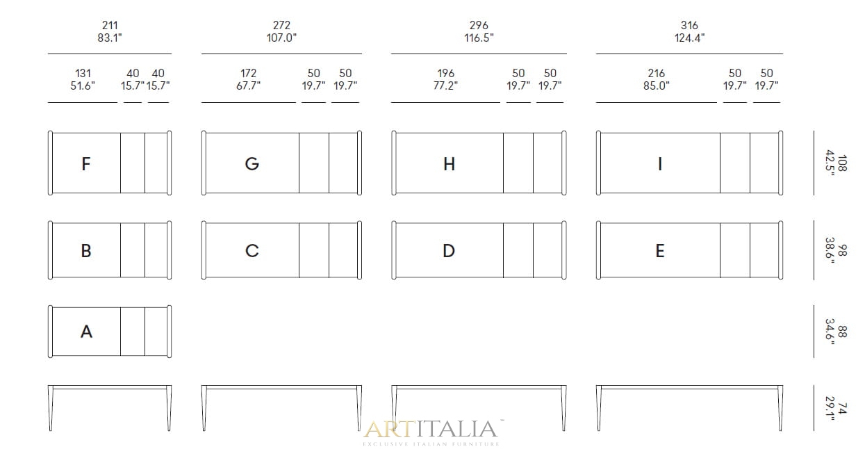 - 216 cm + 50+50 x 98, 108 cm