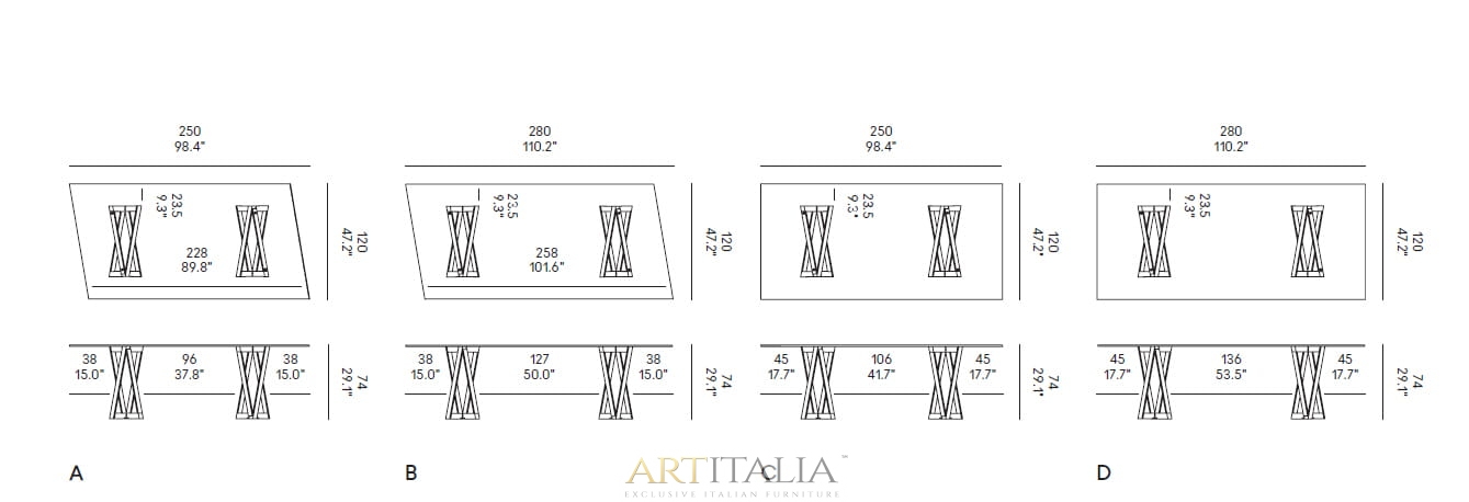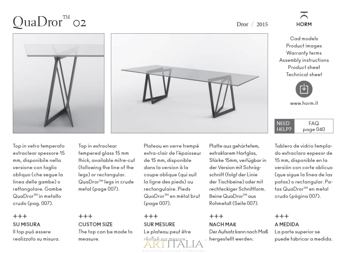 Włoskie nowoczesne stoły Casamania Horm model QuaDror Glass 02