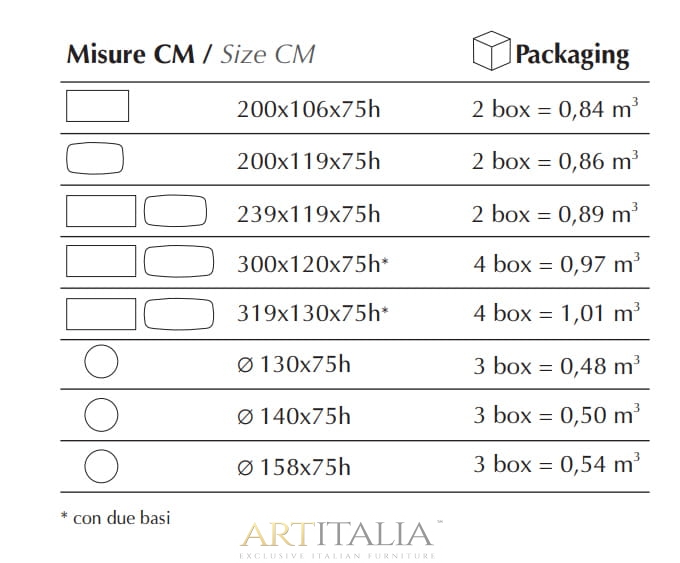 - prostokątny 200 x 106 cm, 240 x 120 cm, 300 x 120 cm, 319 x 130 cm