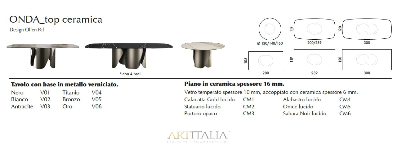 Włoskie nowoczesne stoły z kolekcji Onda - wersja z blatem ceramicznym