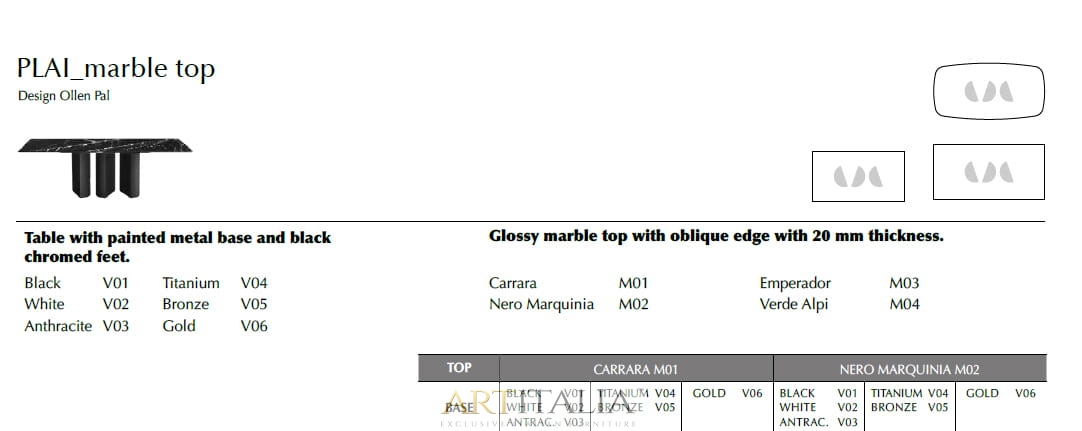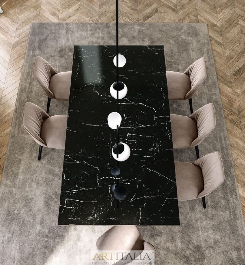 Włoskie nowoczesne stoły z kolekcji Plai - wersja z blatem marmurowym