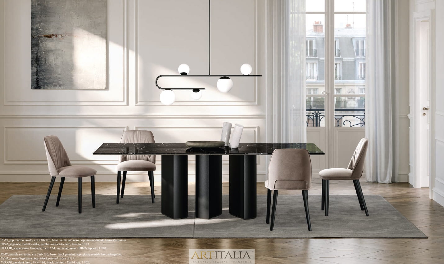 Nowoczesne włoskie stoły z kolekcji Plai - blaty marmurowe