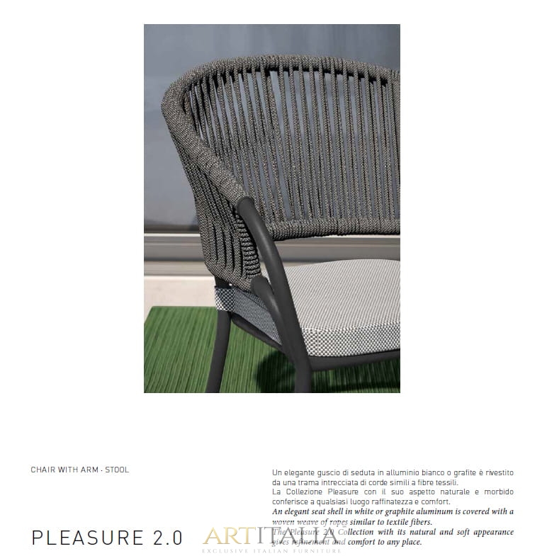 - do krzeseł materiały obiciowe na poduszki odporne na warunki atmosferyczne (dwa warianty): kategoria A oraz C Luxury z akrylu, kategoria B z polipropylenu