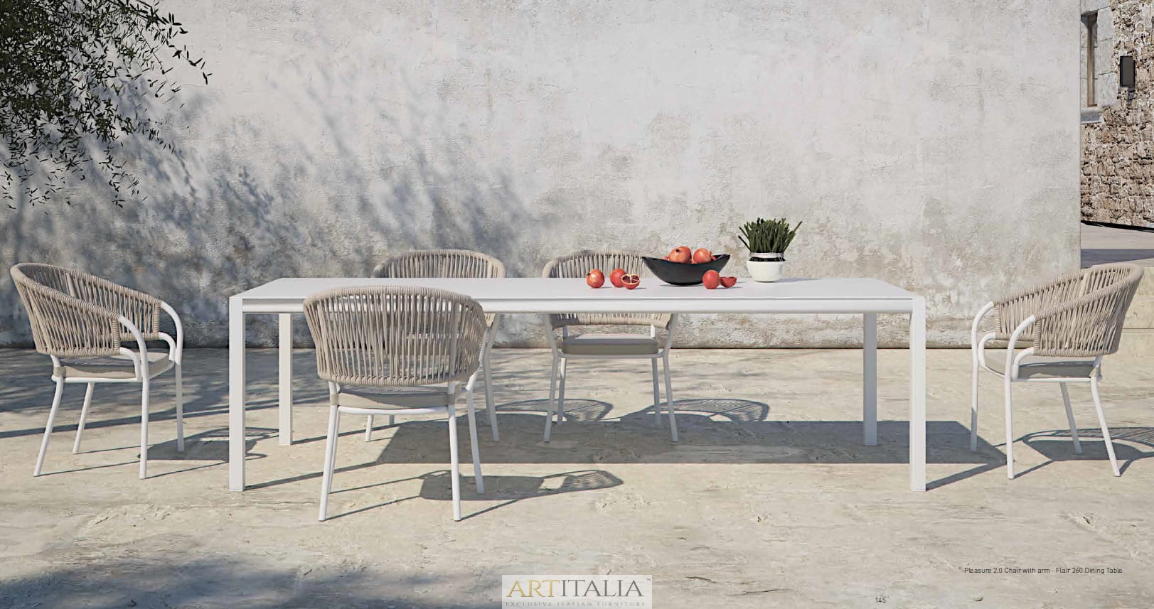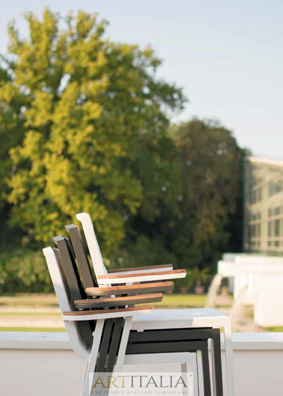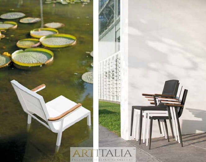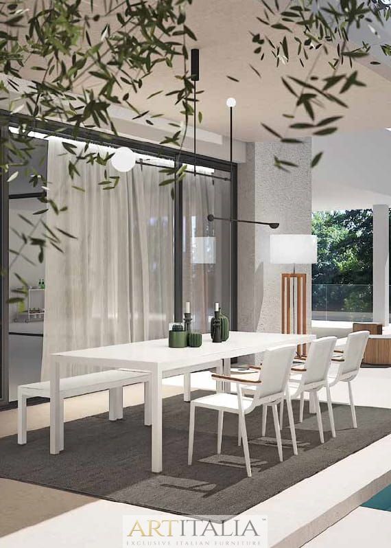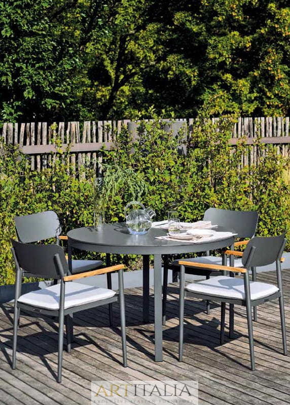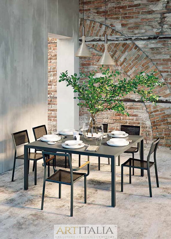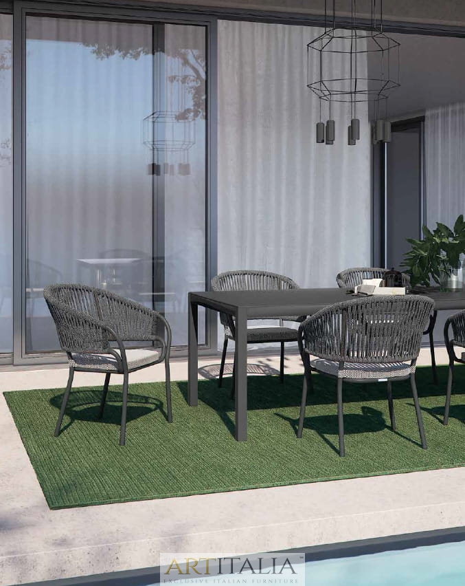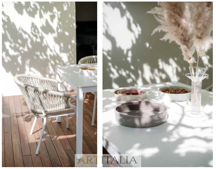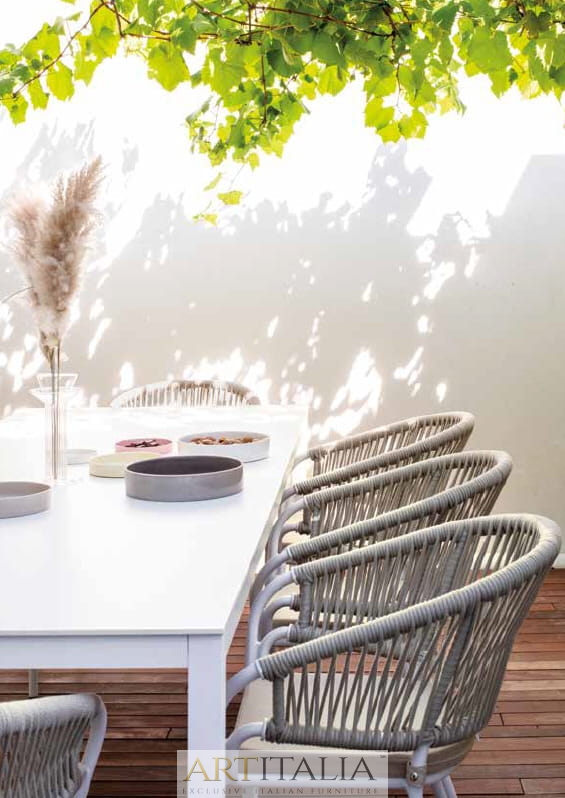 Włoskie ekskluzywne meble do ogrodu Atmosphera, komplety obiadowe stoły z krzesłami. Stół model Flair