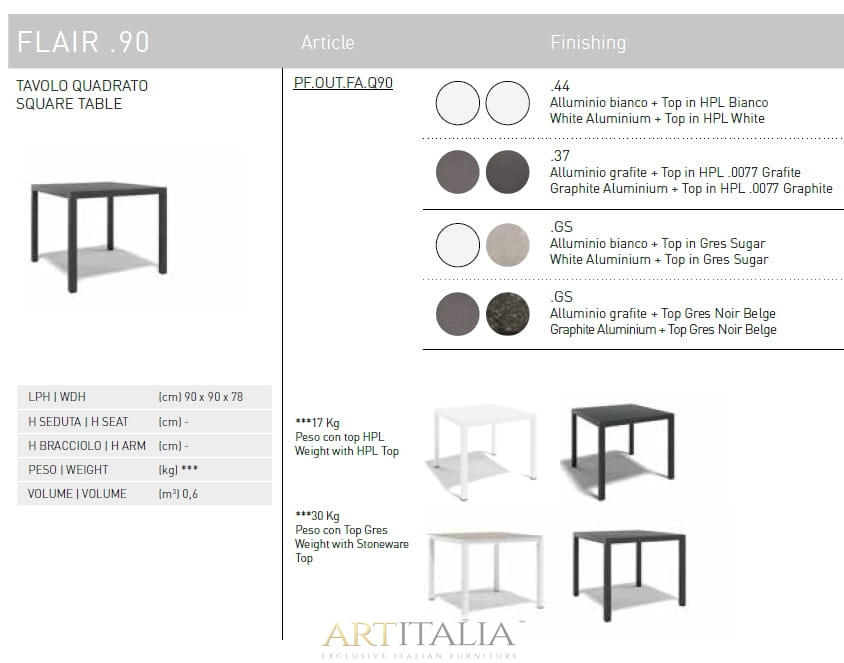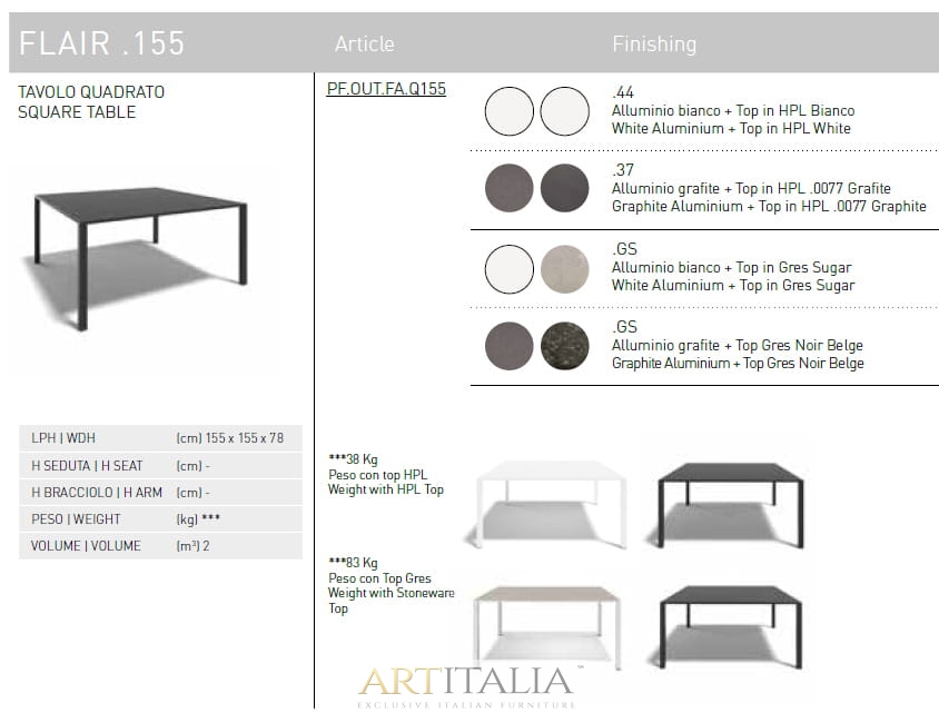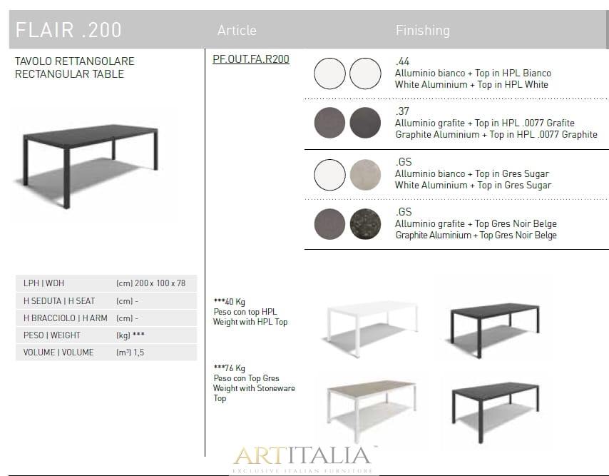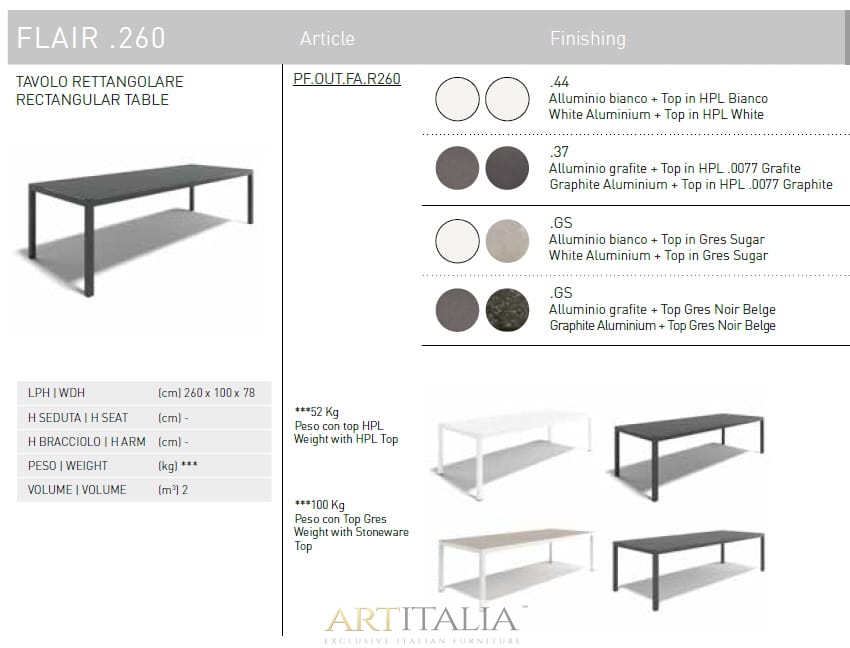 Włoskie nowoczesne stoły ogrodowe Atmosphera model Flair 90 - 155 - 200 - 260 cm