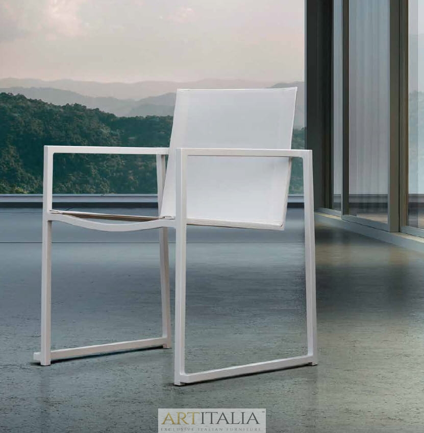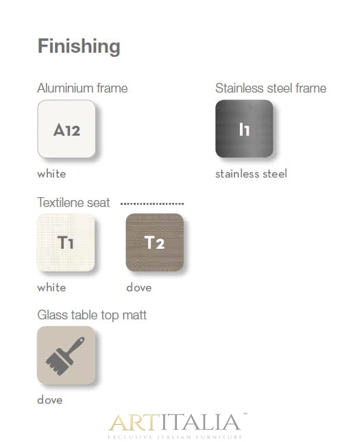 Do kompletu polecamy krzesła z tej samej kolekcji, rama alu biała (cena 1317 zł brutto) lub inox (2 147 zł brutto) z tkaniną na siedzisku i oparciu pod kolor ramy.
