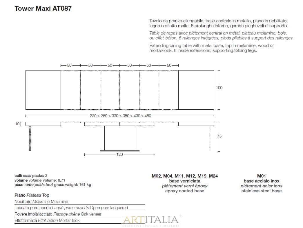 Włoskie nowoczesne stoły marki Altacom do salonu, jadalni, kuchni. Model Maxi Tower rozkładany do 480 cm