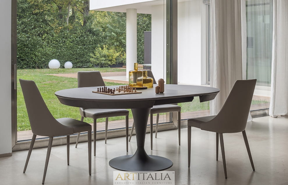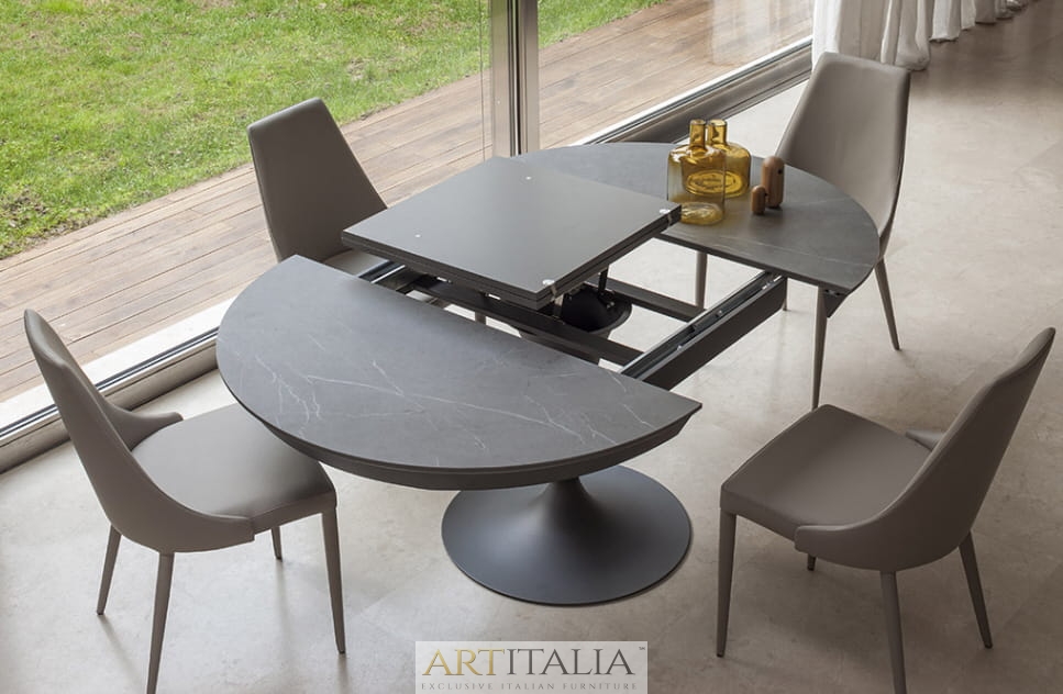 Włoskie nowoczesne stoły, model: Sun - okrągły stół rozkładany do owalnego.