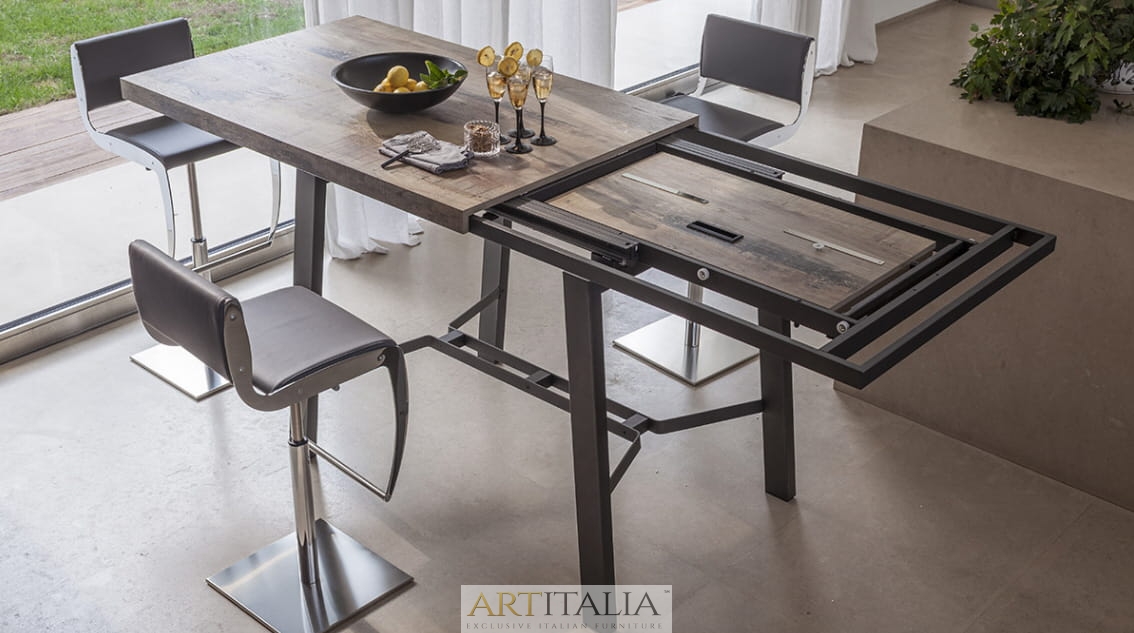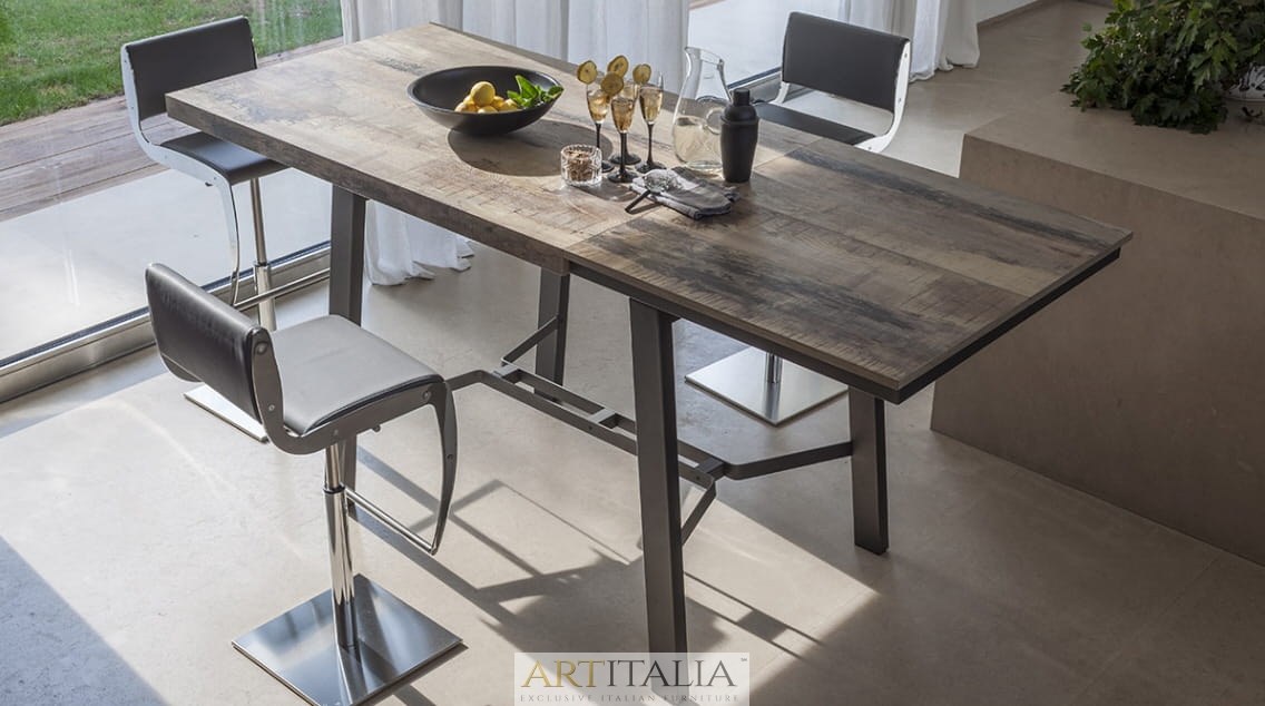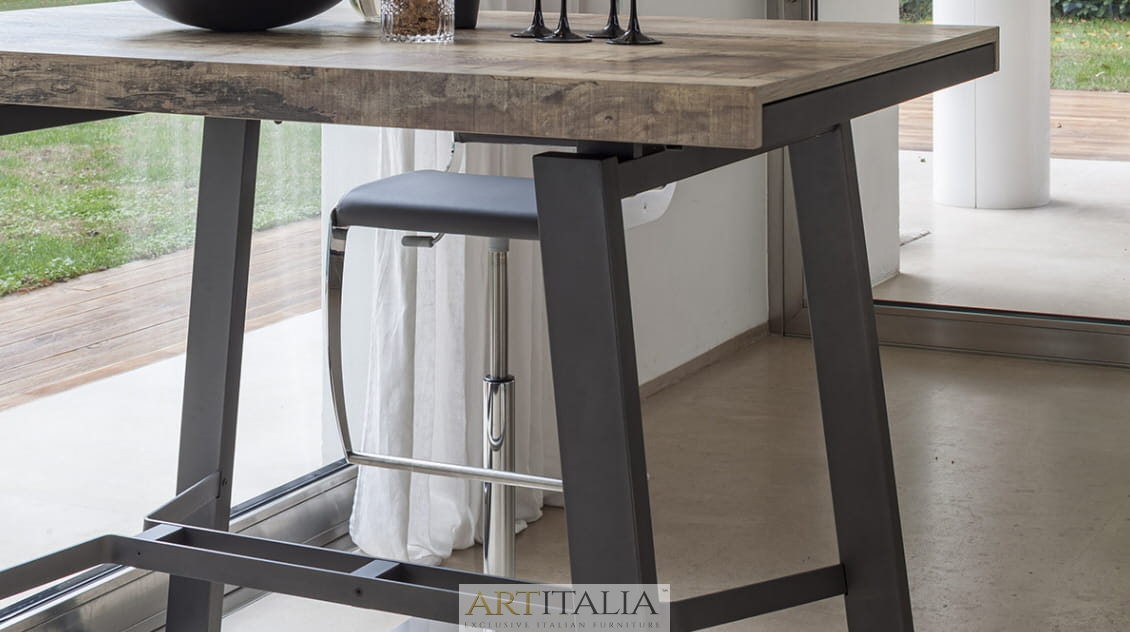 Włoskie nowoczesne rozkładane wysokie stoły do hokerów marki Altacom do salonu, jadalni, kuchni. Model Pick Up