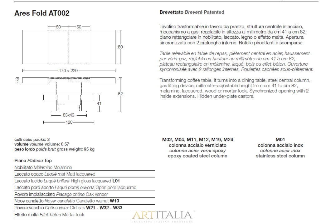 Włoskie rozkładane ławo - stoły marki Altacom do salonu, jadalni, kuchni. Model Ares Fold
