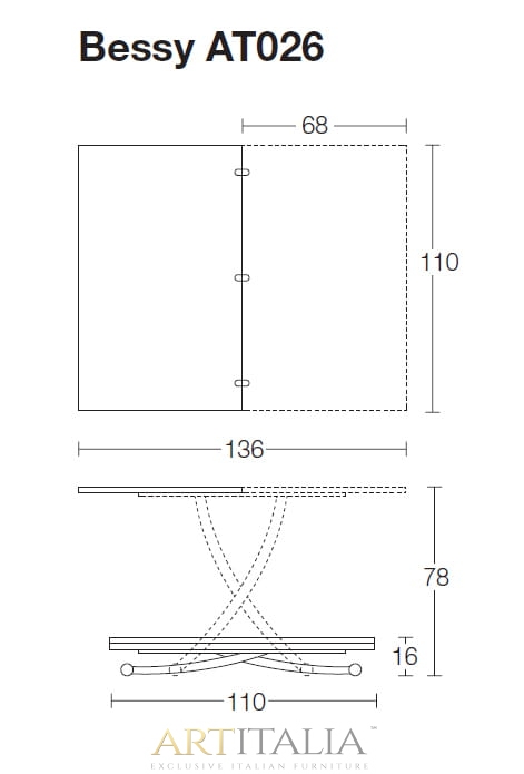 - wersja rozłożona (stół): 136 x 110 x h 78 cm