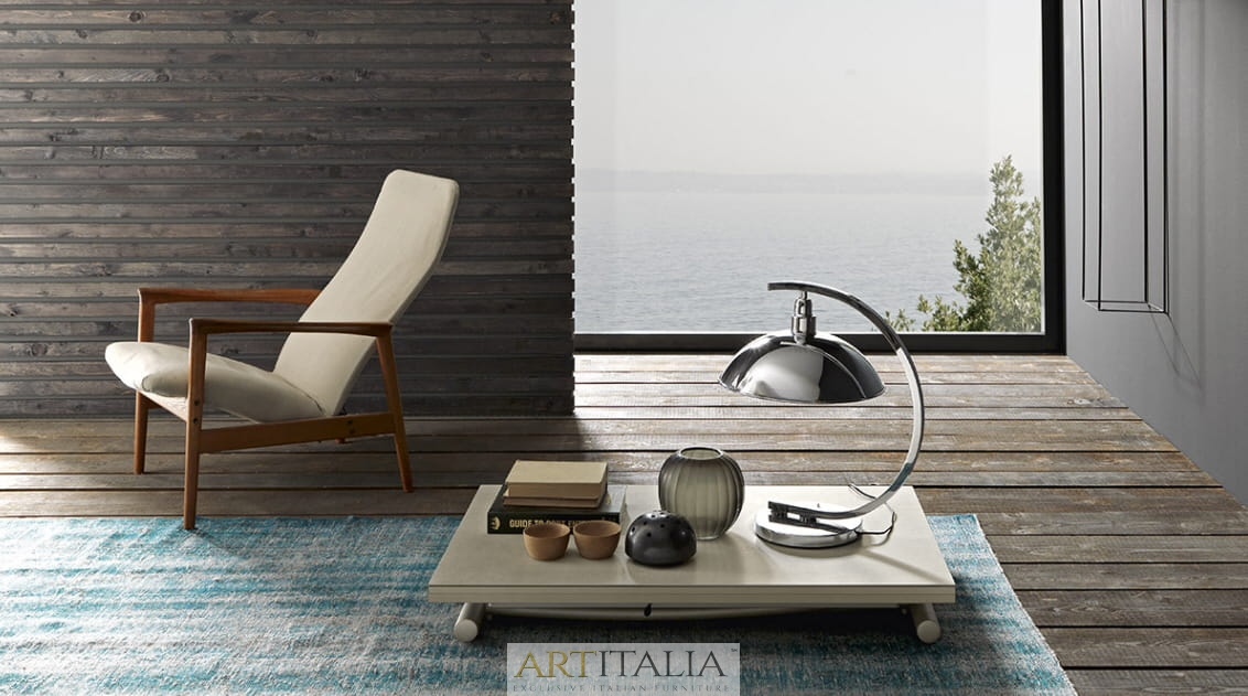 Włoskie nowoczesne stoliki kawowe rozkładane do wielkości dużego stołu. Model: Bessy