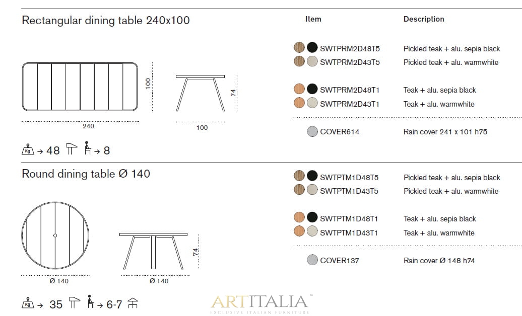 Włoskie stoły ogrodowe Ethimo, model: Swing