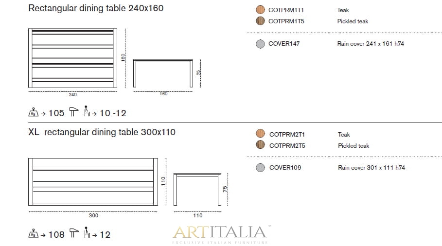 Włoskie stoły ogrodowe Ethimo, model: Costes 240 x 160 cm