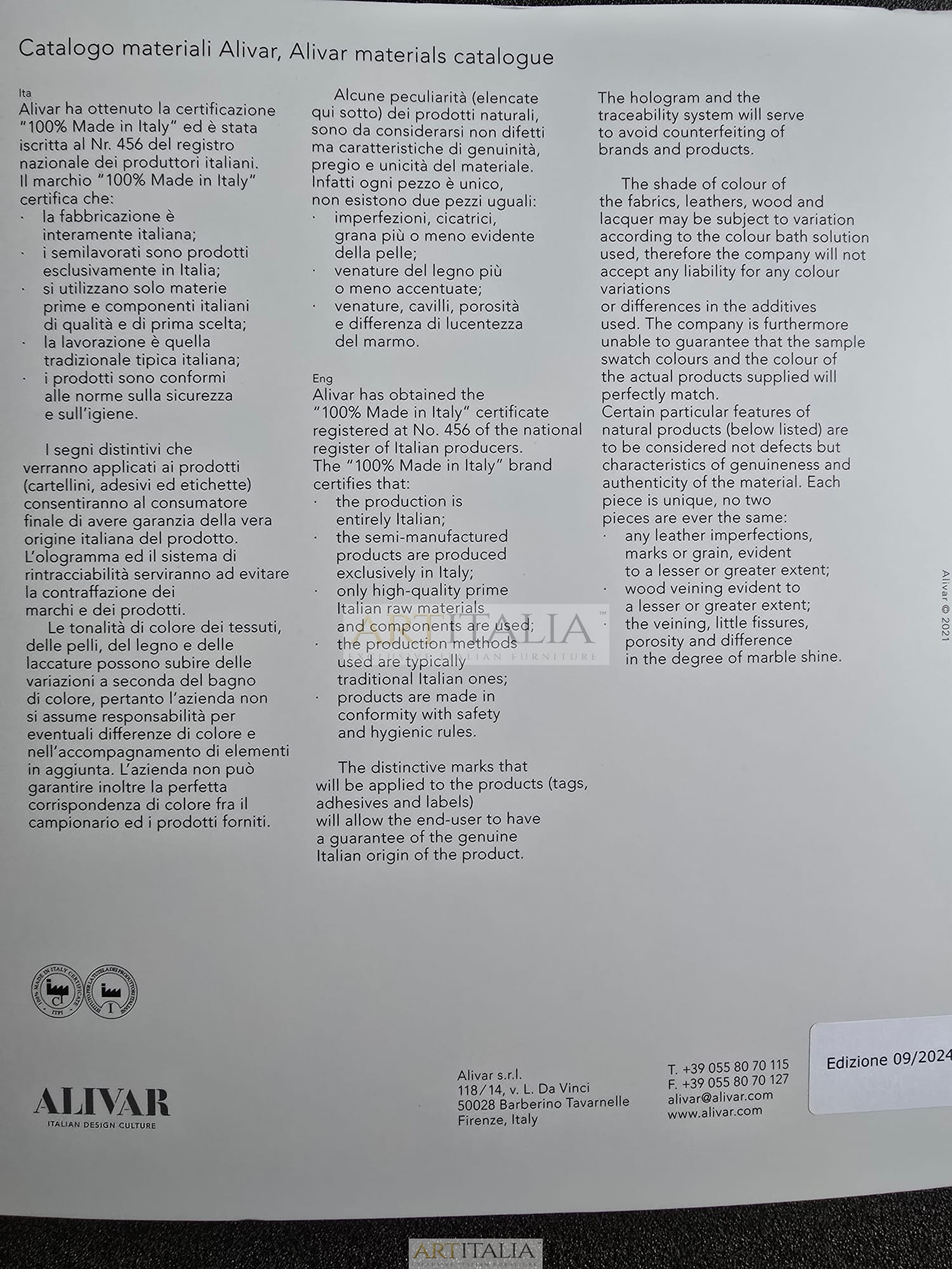 Tkaniny i skóry, materiały wykończeniowe ALIVAR plik PDF - pobierz >>>