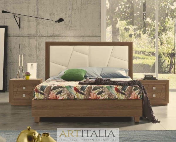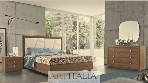 Stylizowana nowoczesna sypialnia włoska z kolekcji mebli Chantal, produkowana w kilku wersjach wykończenia łóżka oraz frontów meblowych. Meble wytwarzane z najlepszych włoskich materiałów.