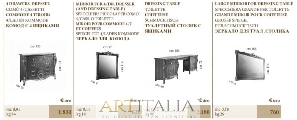 - inne elementy z zestawu do jadalni (komody, serwantki). Każdy z elementów kolekcji można kupić osobno. W skład zestawu nie wchodzi materac. Meble produkowane i sprowadzane na zamówienie.
