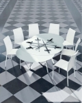 Dostępne 2 rodzaje podstaw: tradycyjne 4 nogi i 1 kolumna. Kolorystyka: podstawy 6 wersji, blaty 5 wariantów kolorystycznych.