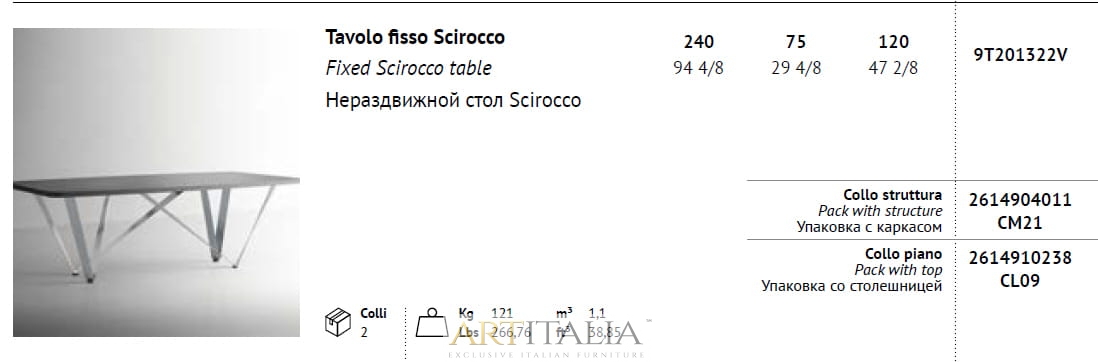 Stół Scirocco 240 x 120 cm Tomasella Class kolekcja Vulcano