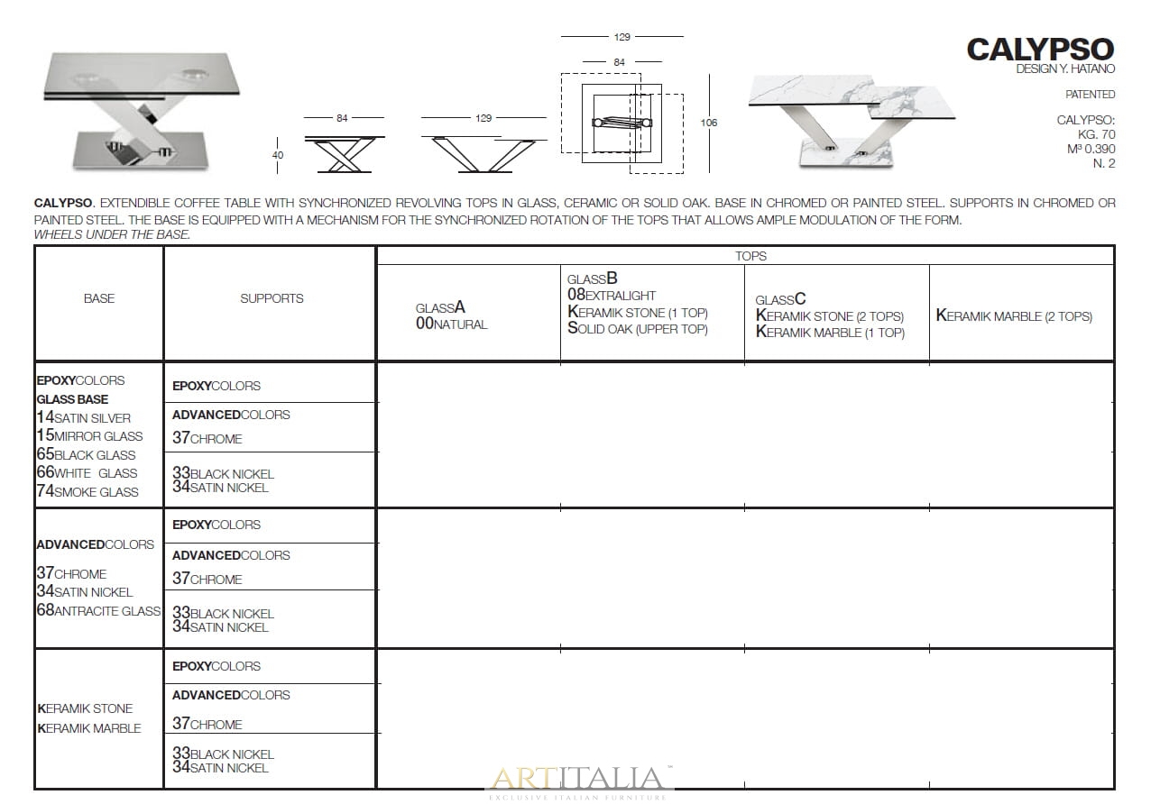 Kolekcja włoskich nowoczesnych stolików kawowych NAOS model Calypso
