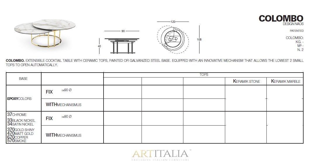 Kolekcja włoskich nowoczesnych stolików kawowych NAOS model Colombo