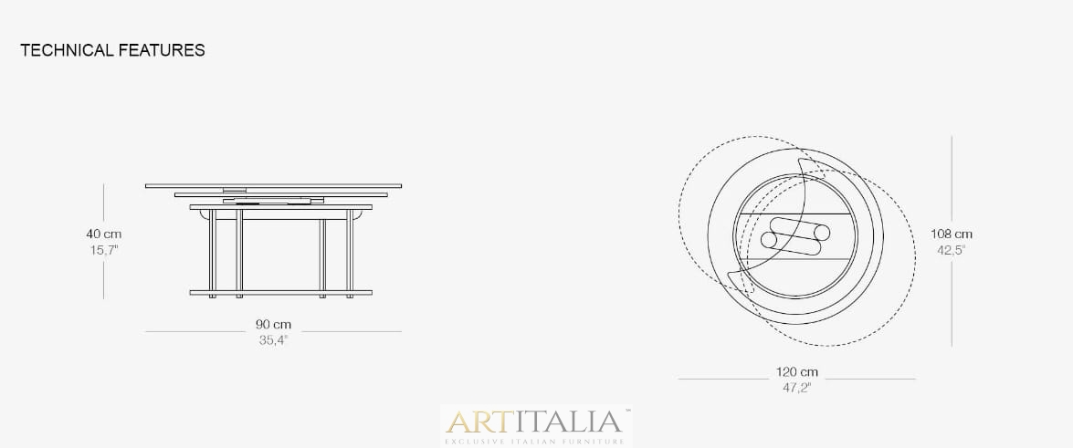 - z dwoma blatami, wersja rozkładana: po rozłożeniu 120 x 108 cm x h 40 cm