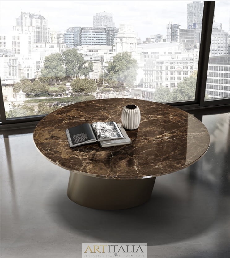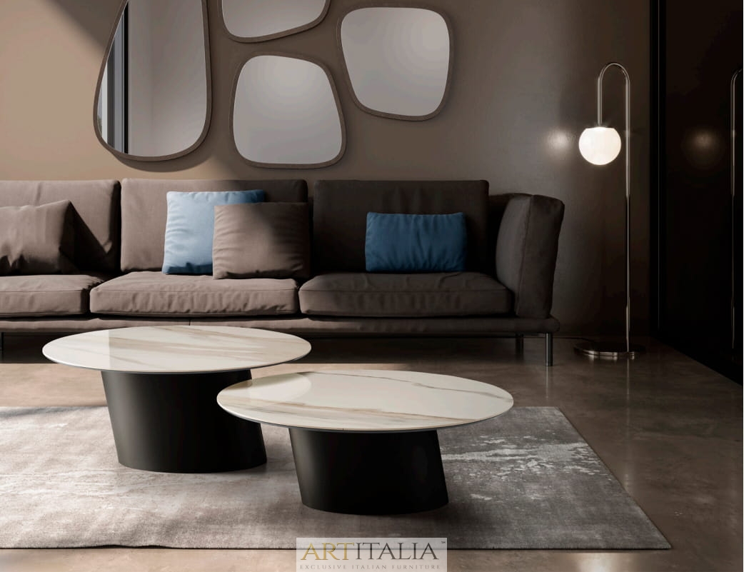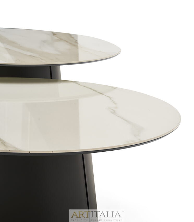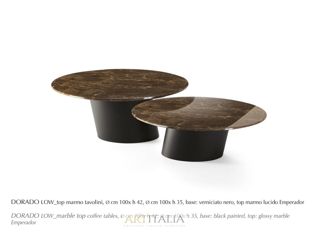 Nowoczesne włoskie stoliki kawowe Dorado Low - blaty ceramiczne, szklane, marmurowe, fornirowane