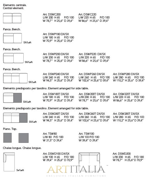 - sofa 200 x 100 x h 65 cm art. DSW 200