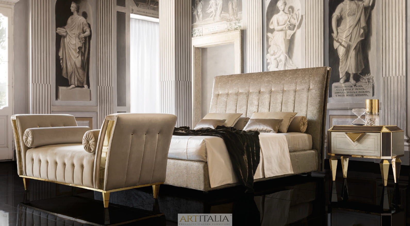 Włoskie ekskluzywne stylizowane meble z kolekcji Adora. Łoże Diamante