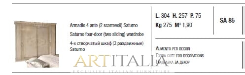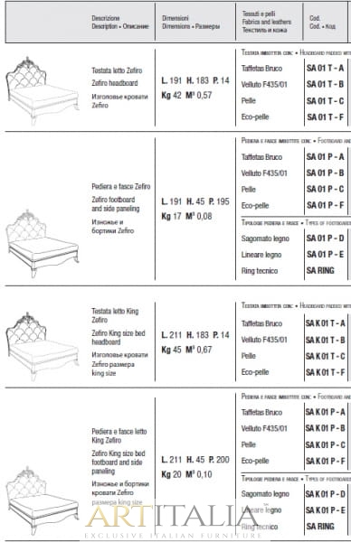 Ekskluzywny komplet mebli do sypialni D`Amore Zefirro, składający się z następujących elementów (wymiary na zdjęciach w galerii)