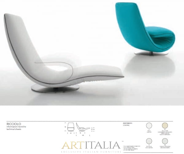 Ekskluzywny fotel leżanka Ricciolo Lounge ze składanym siedziskiem, dostępna tapicerka: