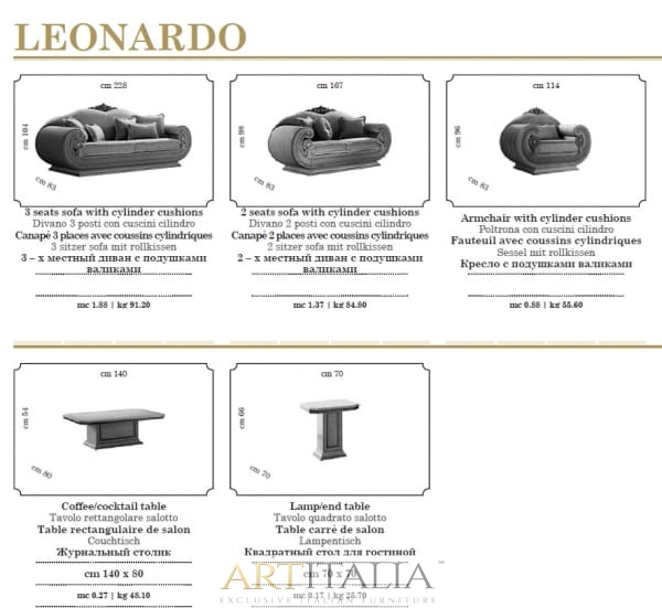 LEONARDO Włoskie ekskluzywne sofy Arredoclassic komplety wypoczynkowe meble do salonu