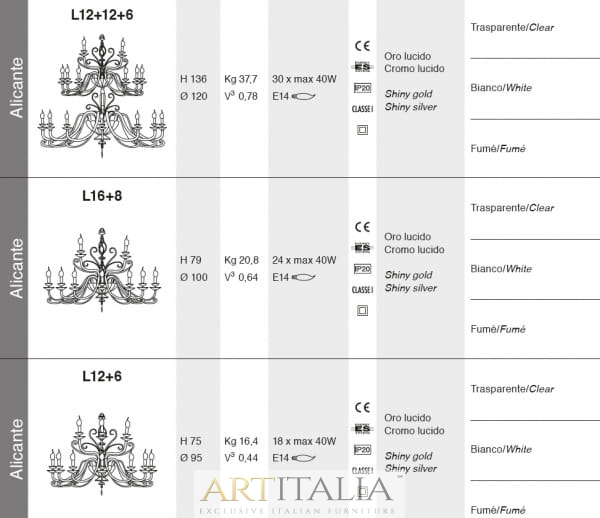 Włoskie ekskluzywne żyrandole Eluce - kolekcja Alicante
