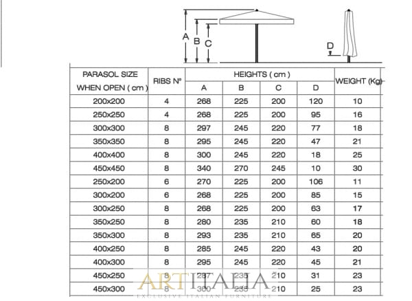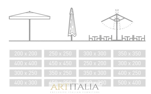 Profesjonalne aluminiowe parasole ogrodowo - kawiarniane różnej wielkości. Rozmiary od 200 x 200 cm do 400 x 500 cm.