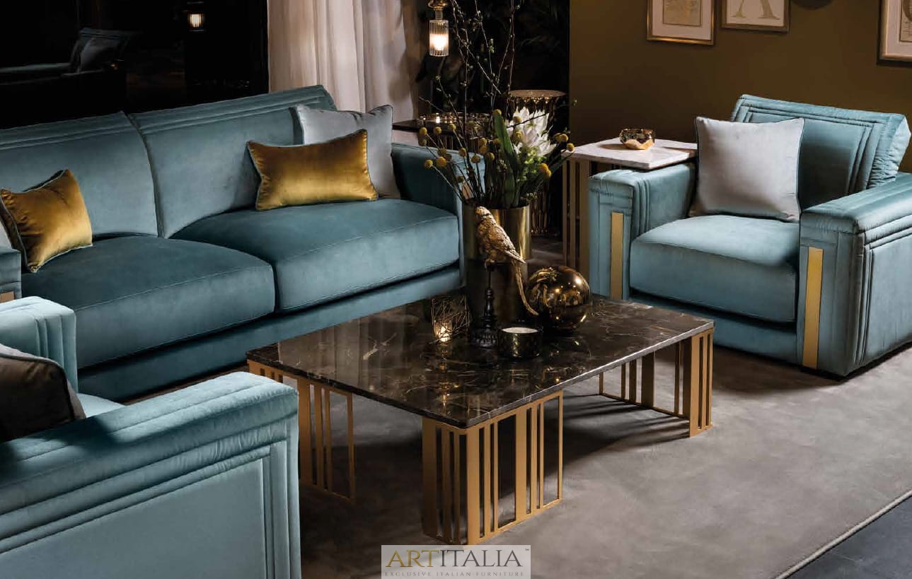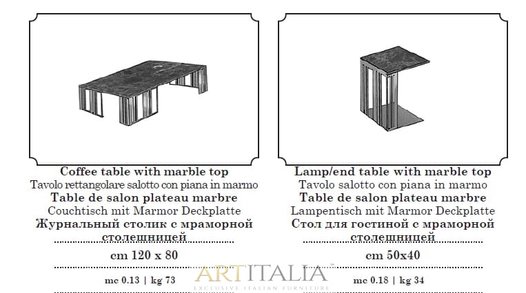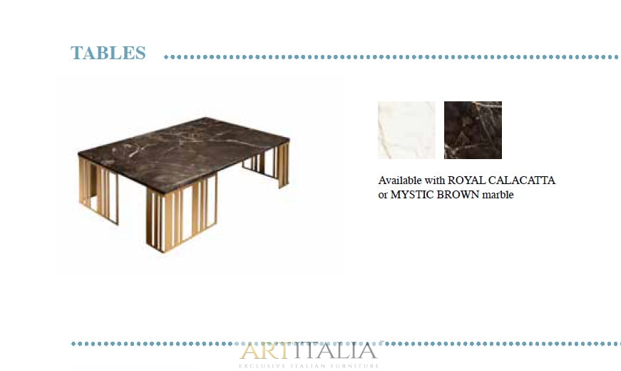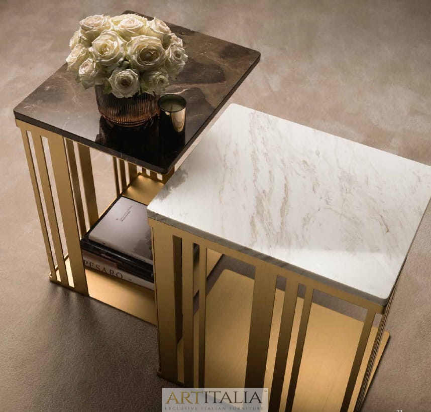 Włoskie ekskluzywne stoliki kawowe Atmosfera marki Adora z blatami marmurowymi